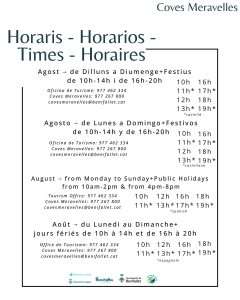 Horarios y visitas a las Cuevas Maravillas y al Llagut de Benifallet