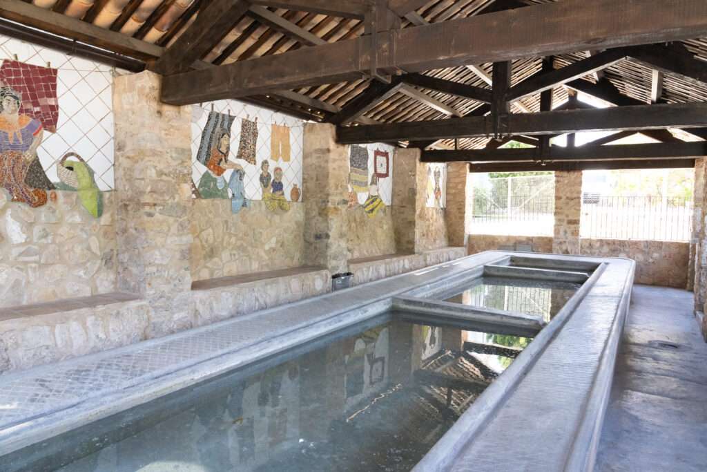 Los lavaderos se encuentran situados en la confluencia de las calles dr. Sastre, Alfonso y el Parque de las Moreras, en el paseo del río y se lavó la ropa hasta bien entrado el siglo XX. El edificio de los lavaderos de Benifallet está formado por un único volumen de planta baja. Su disposición en planta es rectangular con cubierta longitudinal en dos aguas. La estructura vertical está formada por pilares de mampostería y la estructura horizontal por caballos de madera dispuestos en cuatro crujías. Los cierres de muros de mampostería entre los pilares constituyen una barrera de media altura que permite la iluminación y ventilación continua de los lavaderos. Singular es también la estructura de caballos de la cubierta y el sistema de entrevigado y soporte de las tejas. Están constituidos por tres lavaderos contiguos comunicados entre sí por rebosaderos para facilitar los procesos de limpieza y repaso de la ropa, y en cuyo perímetro se encuentra la superficie de limpieza en pendiente hacia las balsas. Cada municipio disponía de su lavadero, siendo un importante avance por la gran mejora que significó para la salud pública del pueblo el paso de limpiar la ropa junto al río a hacerlo en una edificación específica. Etnográficamente, es necesario constatar la función histórica de los lavaderos como punto de encuentro, de intercambio, de comunicación y de convivencia entre las mujeres del pueblo. Hasta el extremo de que el término “hacer lavadero” pasa a tener un doble sentido, significando además de la acción propia de los lavaderos charlar y curiosear mientras se lava la ropa. Por último, la cultura del aprovechamiento del agua, que parece que volvemos a valorar, se constata muy bien en estas construcciones en cuanto al aprovechamiento y la reutilización del agua. El aprovechamiento del agua del origen natural para hacer lavadero comunitariamente, posibilitaba después aprovecharla para regar los huertos cercanos. En 2012, la artista Amanda Corominas hizo un mosaico para conmemorar esta tradición (foto inferior), dándole vida con el mismo espíritu que se hacía a principios de siglo pasado, con las mujeres como protagonistas lavando la ropa. Puede visitar su galería de arte en la calle Ermita.