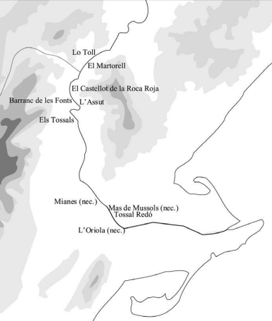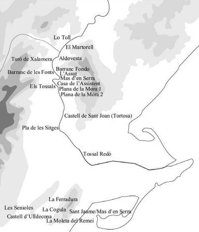 En 1997, Diloli hacía la primera descripción de este yacimiento situado sobre una colina, junto a un barranco que bordea la actual carretera Benifallet - El Pinell de Brai. El material que se ha encontrado está conformado por un gran número de cerámica hecha a mano característica de la primera Edad del Hierro , cerámica de base plana con decoración de cordones, fragmentos de ánforas que imitan prototipos fenicios , algunos con restos de pintura . Pero también aparece material reconocido del período ibérico con rasgos arcáicos, como un jarra con asas horizontales de doble tendón, labio plano y una ligera moldura sobre el borde. Sin duda, el hallazgo más interesante en este yacimiento fue un fragmento de cresta de la espalda con arranque de asa de un ánfora que seguía el canon griego. Sus características, hecha de una pasta rojiza, hicieron que los investigadores la catalogaran del período coríntico del s. VI.