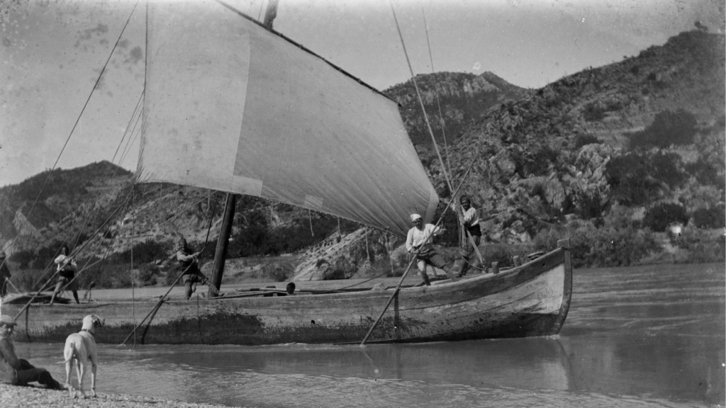 El sistema més utilitzat per a remuntar el riu és el de la sirga. El patró, situat a la popa, aguanta la corda anomenada sàgola o sirga que, passant per l'extrem superior del pal, acaba amb el sirgador. Cal molta alçada de pal per a salvar els canyars, els arbres de ribera i els altres obstacles que s'interposen entre el camí de la sirga i l'embarcació. Cal, a més, una gran longitud de corda per a passar pels nombrosos llocs en els quals el fons del riu obliga a passar per punts molt distants de la riba on és traçat el camí. “Quan la sirga es fa amb homes, cada un rep un nom especial: el de davant, anomenat daliner, s'ajuda amb un bastó anomenat dalí i es protegeix l'espatlla amb unes espatlleres de fusta. En el cas que hi hagi dos sirgadors, el segon s'anomena rerassaguer o zaguero; quan en són més, el tercer s'anomena nus d'ase i no s'ha registrat mai més de quatre sirgadors. Quan es fa servir un mul, aquest necessita d'un a dos homes perquè se'n cuidin. És una feina dura a causa dels camins dolents i de les canyes o arbusts que poblen les ribes” (Carreras Candi, 1993:317). Francesc Cost explica en el seu llibre Benifallet entre dos segles que “per poder sirgar, una de les coses imprescindibles que hi havia era que necessàriament, al llarg del riu i al mateix cantell de la riba, s'havia de respectar un caminet pel qual passaven els que feien la sirga, tant si eren persones com si eren animals. Els propietaris de les terres no hi podien posar cap impediment ni obstacle, i els llaguters tenien cura, pel compte que els tenia, de conservar-lo net.” El viatge riu amunt exigia el remolcament de llaguts. Per tant, com hem explicat, un matxo, i més antigament els sirgadors, estiraven el llagut pel camí de sirga. “El llagut s'aguantava per la gúmena, però per fer-lo avançar quan no hi havia prou corrent, perquè ho fes ella sola gràcies a la posició del timó hi havia unes barres llargues de fusta amb una puntera de ferro al final perquè no es gastessin: aleshores, els homes de més bona voluntat les agafaven, una davant i una altra al darrere; com que no hi havia cap llei que assenyalés qui les havia d'agafar, sempre hi havia algun viu que procurava escapar-se'n” (Francesc Cots, Benifallet entre dos segles).